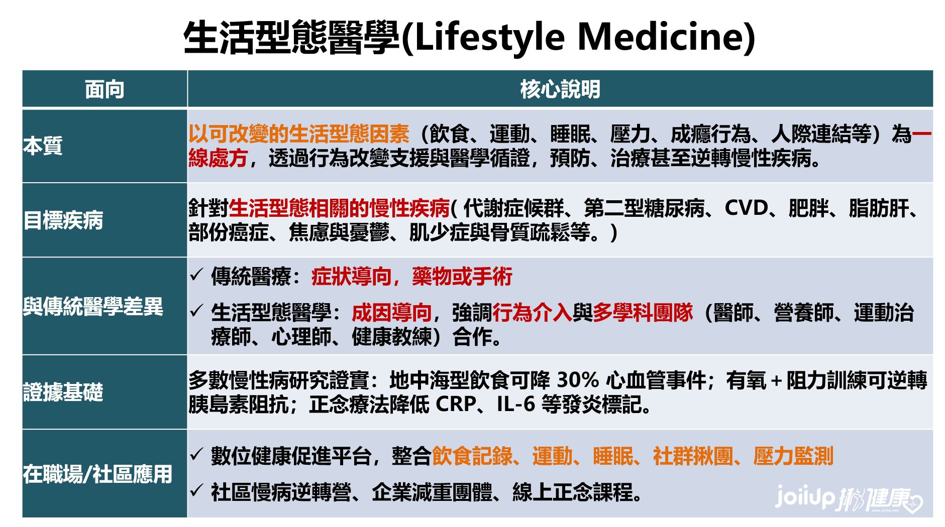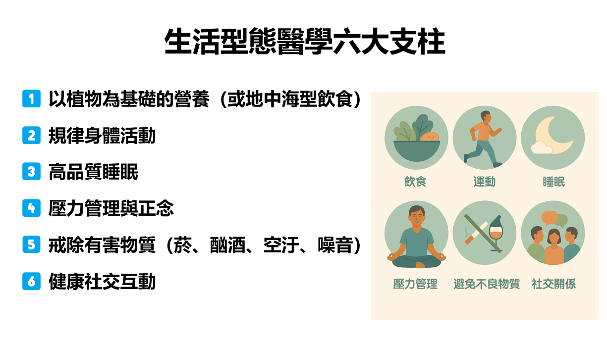 這意味著,方案必須同時兼顧飲食、運動、睡眠、壓力管理、人際連結與避免危險物質等領域。