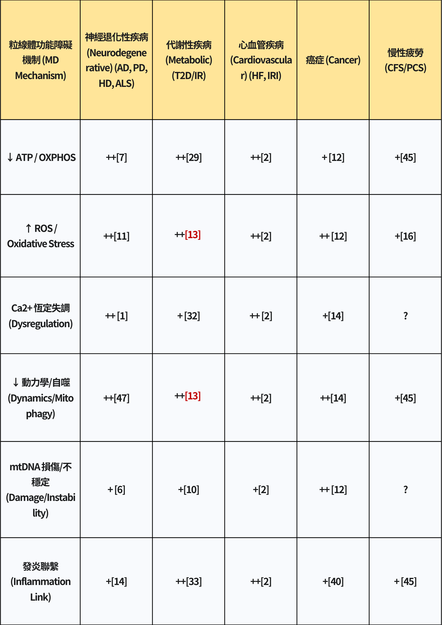 未來的研究方向應包括:深入闡明MD在不同慢性疾病中的精確分子機制;開發更可靠的粒線體功能生物標記物;設計更有效的粒線體靶向遞送系統;進行大規模、設計良好的臨床試驗以驗證各種治療策略的有效性和安全性[4]。結合多組學技術和系統生物學方法,有望更全面地理解粒線體在健康與疾病中的作用,並推動精準粒線體醫學的發展。