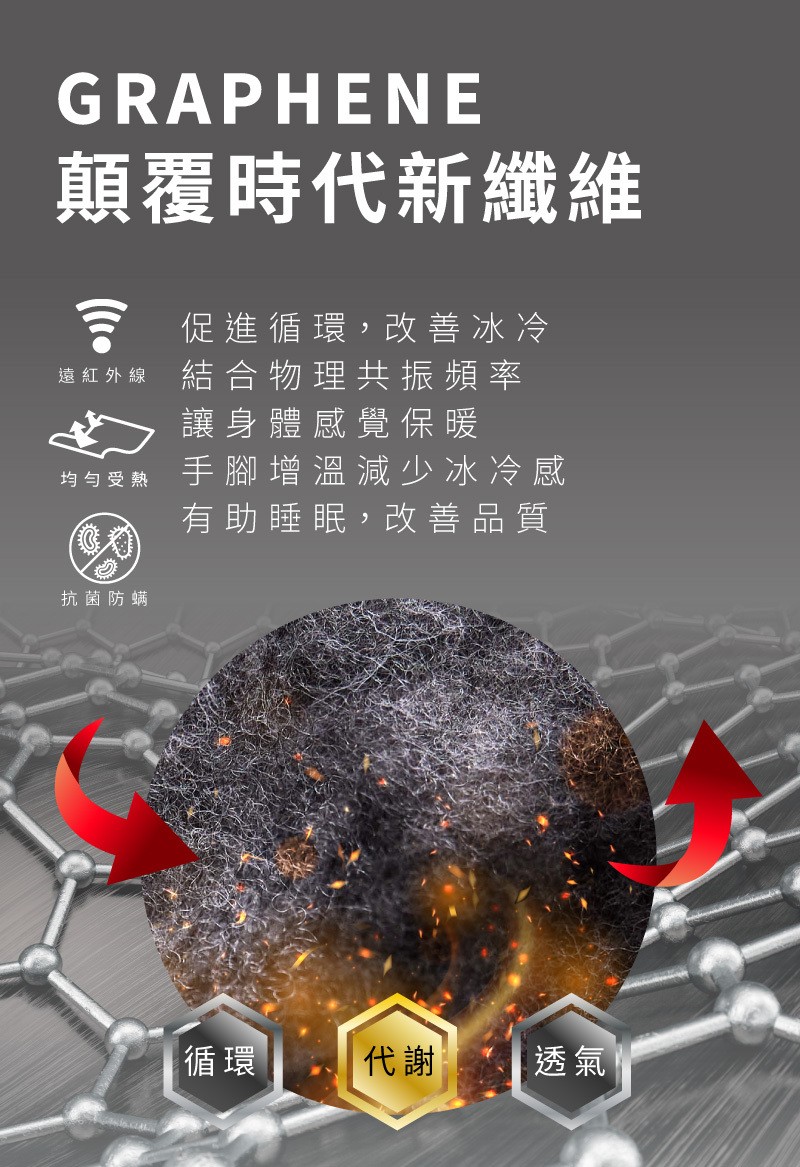 上層表布:62%棉.38%尼龍(遠紅外線+石墨烯)