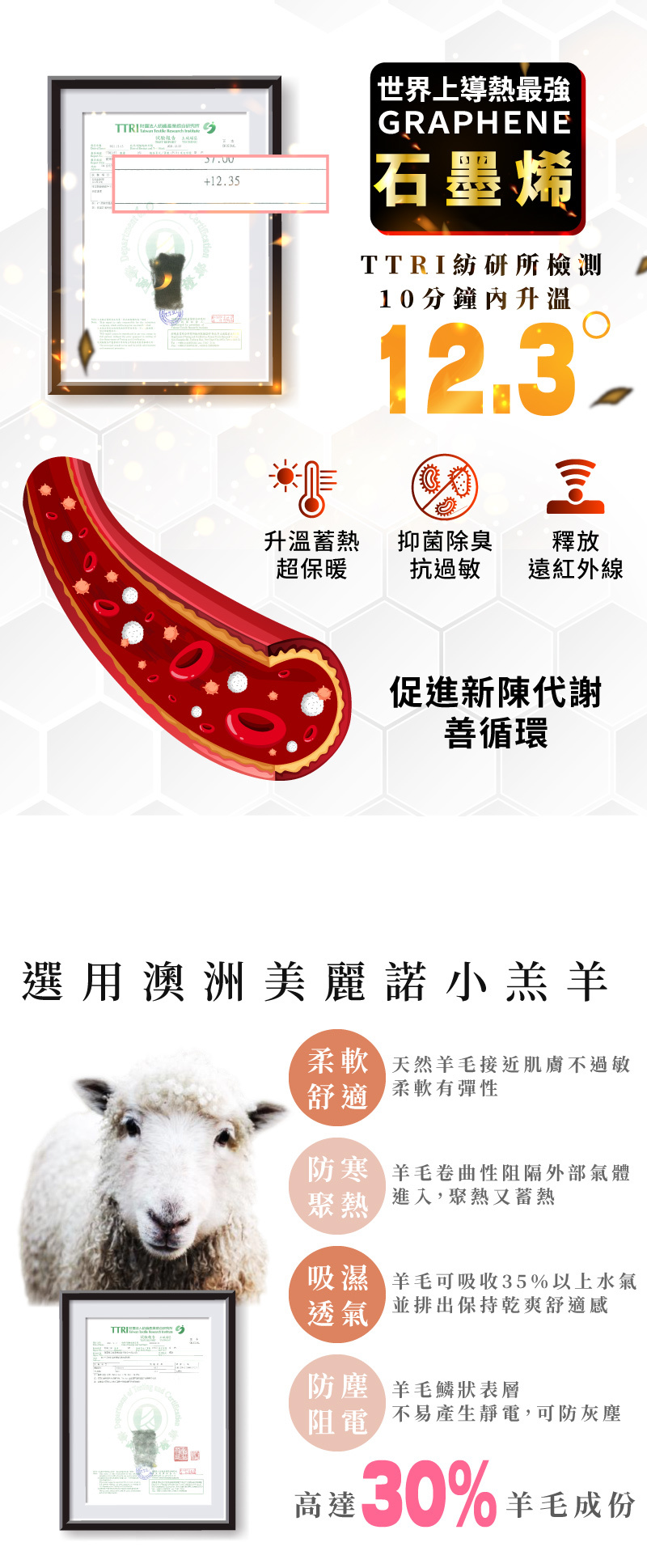內填:30%石墨烯30%羊毛40%抗菌棉