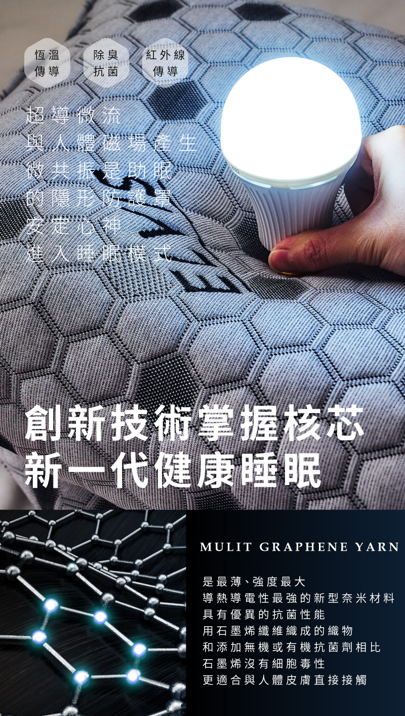 天絲親膚,添加石墨烯,釋放遠紅外線,溫感技術,超導微流促進自體循環。