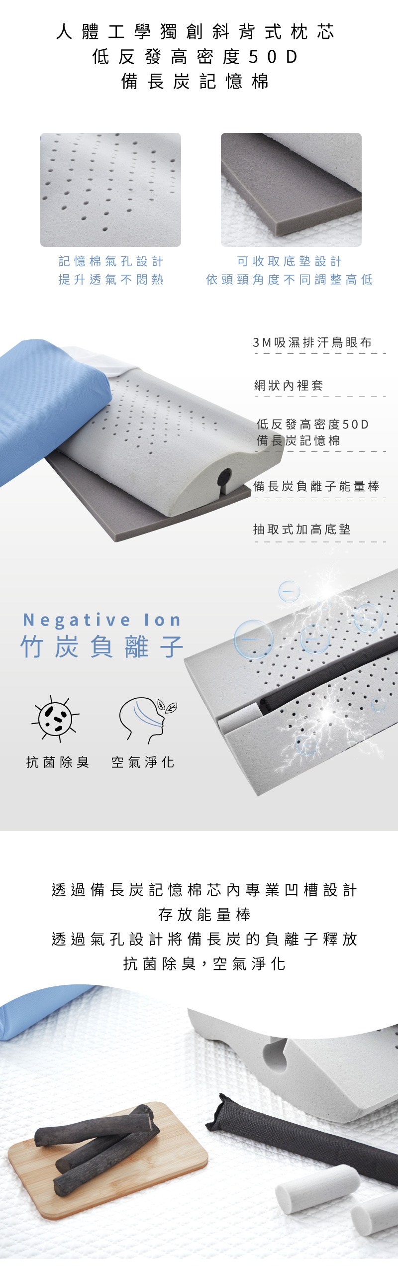 第三層 低反發高密度50D備長炭記憶棉