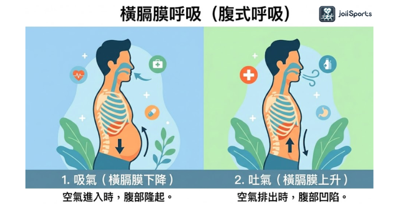 又稱腹式呼吸(Abdominal Breathing),是所有呼吸訓練的基礎,廣泛應用於肺部復健與壓力管理。