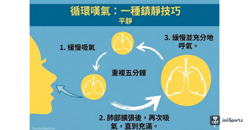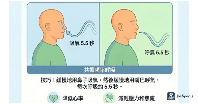 日常壓力管理: 每日固定時間進行共振呼吸(5.5 秒吸,5.5 秒吐)。