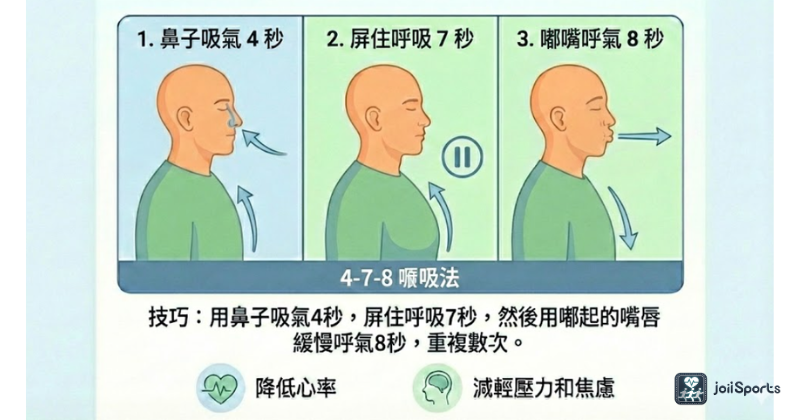 4. 閉氣(7秒): 屏住呼吸,默數 7 秒。