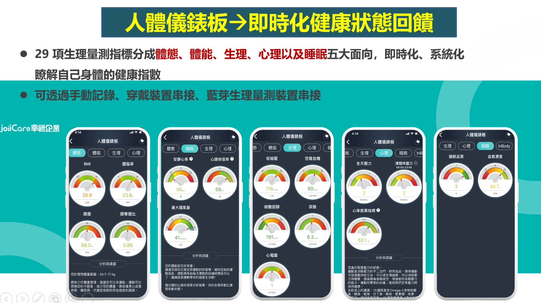 2. 數據掌握:進行全面性與長期性的體態、體能、生理、心理與睡眠數據追蹤和影像篩檢,了解自己的真實風險,也是對自己與家人的負責。