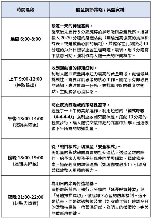 ■ 建議的每日能量節點:順應生理時鐘的系統化設計