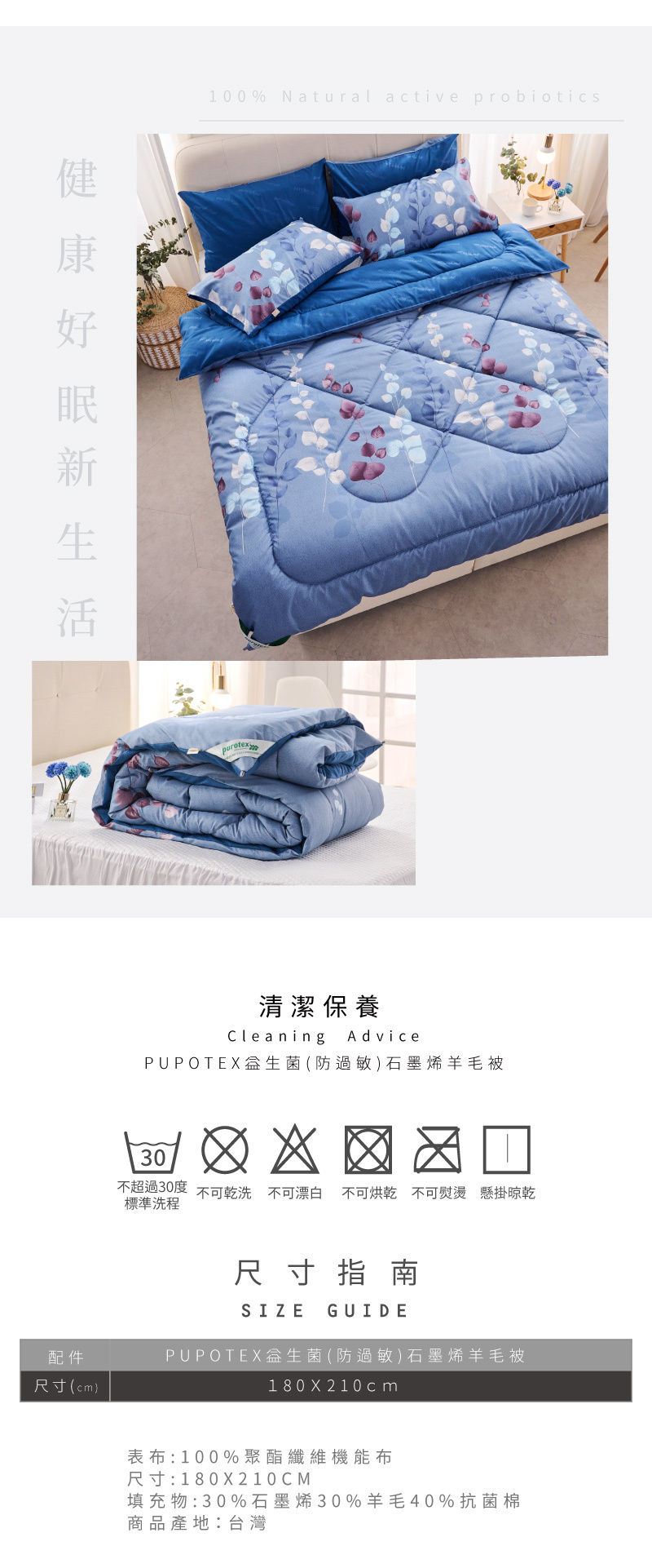 品名:PUPOTEX益生菌防過敏石墨烯羊毛被