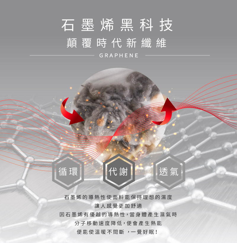 內填:30%石墨烯纖維棉+70%透氣抗菌棉