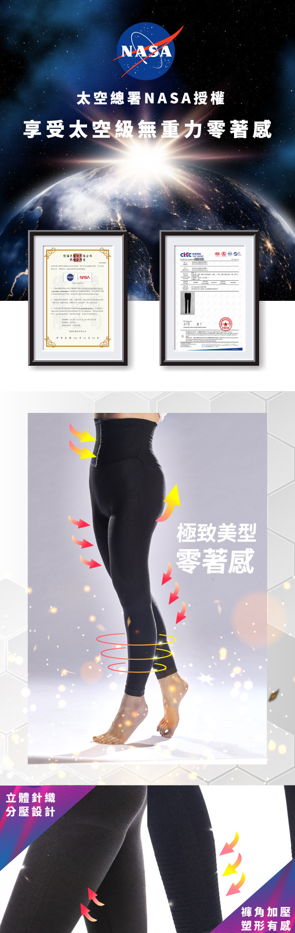 品名 航空太空總署 NASA授權 石墨烯妖塑彈脂褲(馬甲款)