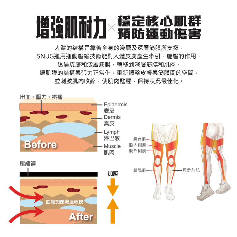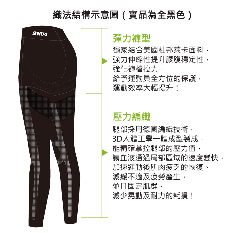 【sNug】強肌力壓縮褲全壓式(女版)台灣製 真壓縮 減緩肌肉疲勞 漸進式加壓 束腹提臀 運動 登山